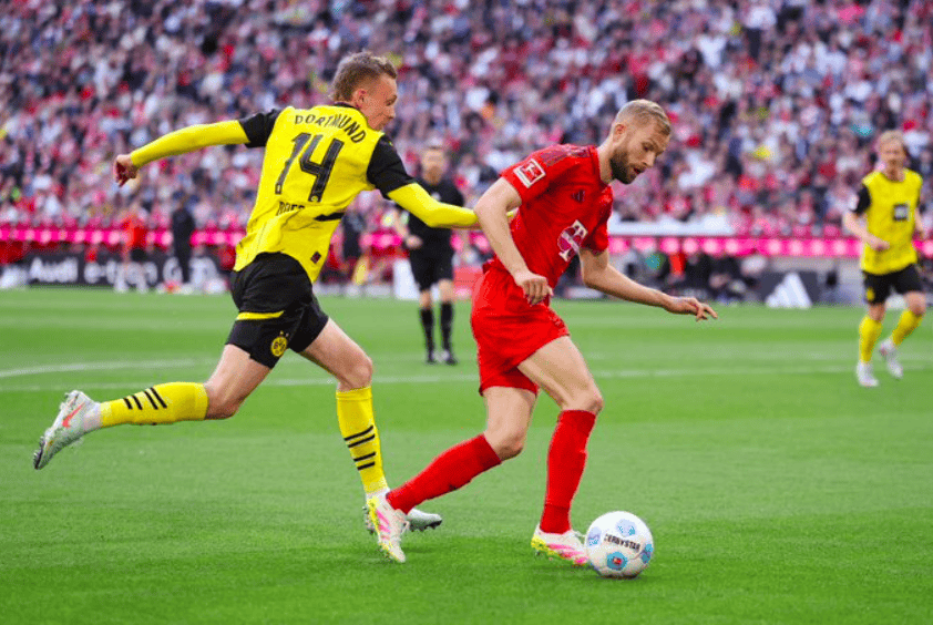 2分钟后,拜仁卷土重来,凯恩后点近距离的头球,被科贝尔在门线上没收,多特蒙德完全陷入被动。