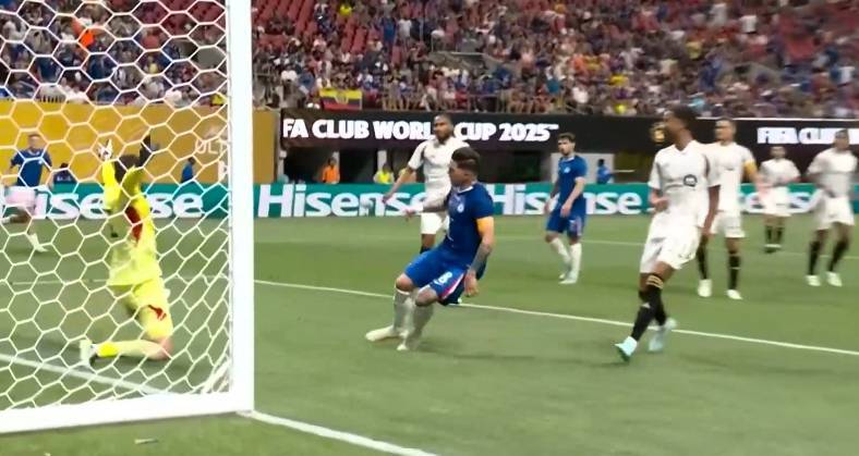 下半场洛杉矶FC一度踢得比较热闹,可是进攻表现只开花不结果,比赛第80分钟,恩佐破门得分,切尔西取得了2-0领先。
